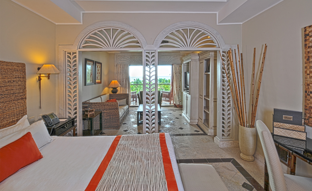 Located in the ground floor of our Castle section Comes with king size bed Full bathroom (with: shower, vanity sinks, hair dryer, bathrobe and slippers) Furnished living room Furnished terrace with direct access to our unique salt-water pool, which surrounds The Castle at Sanctuary. Size: 590 Sq. Ft.