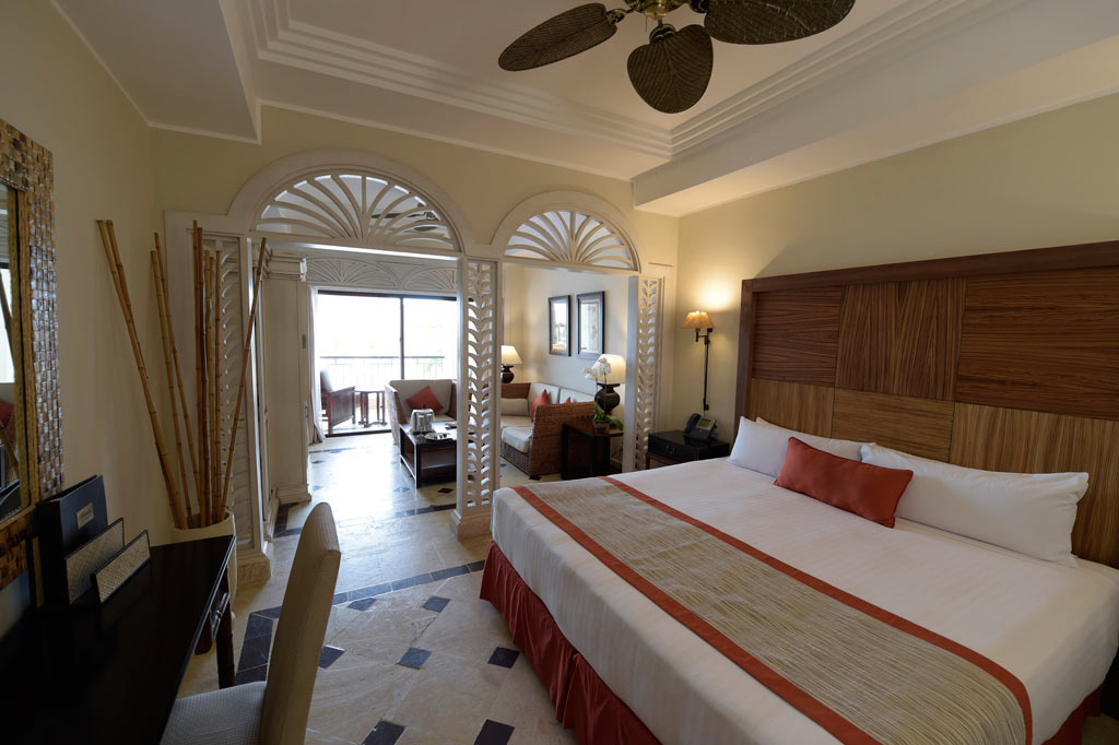 Located in the Colonial section of the resort (main buildings). Comes with a king-size beds or 2 single beds Full Bathroom: Shower, vanity sinks, hairdryer, bathrobes & slippers Furnished Living room Furnished terrace. Size: 754 Sq. Ft.