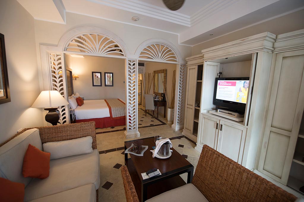 Located in the Colonial section of the resort (main buildings) on the ground floor (beach area). Comes with a king size bed or two single beds Furnished living room Furnished terrace Full bathroom: Shower, vanity sinks, hairdryer, bathrobes & slippers View: Beach or Ocean Size: 754 Sq. Ft.